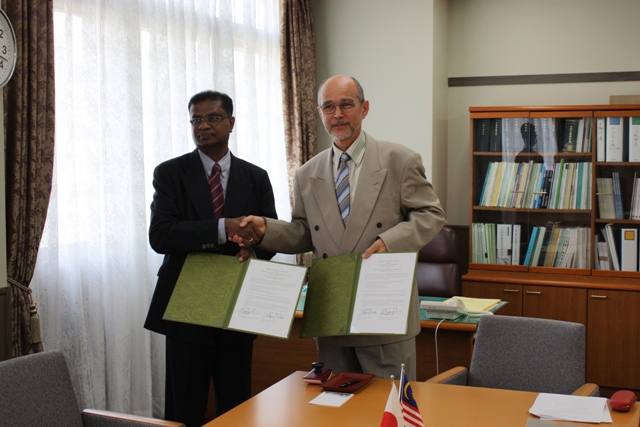 2009年6月2日、マレーシア科学大学言語・翻訳・リテラシー学部との学術交流協定の調印式が言文研究院長室で行なわれた。(